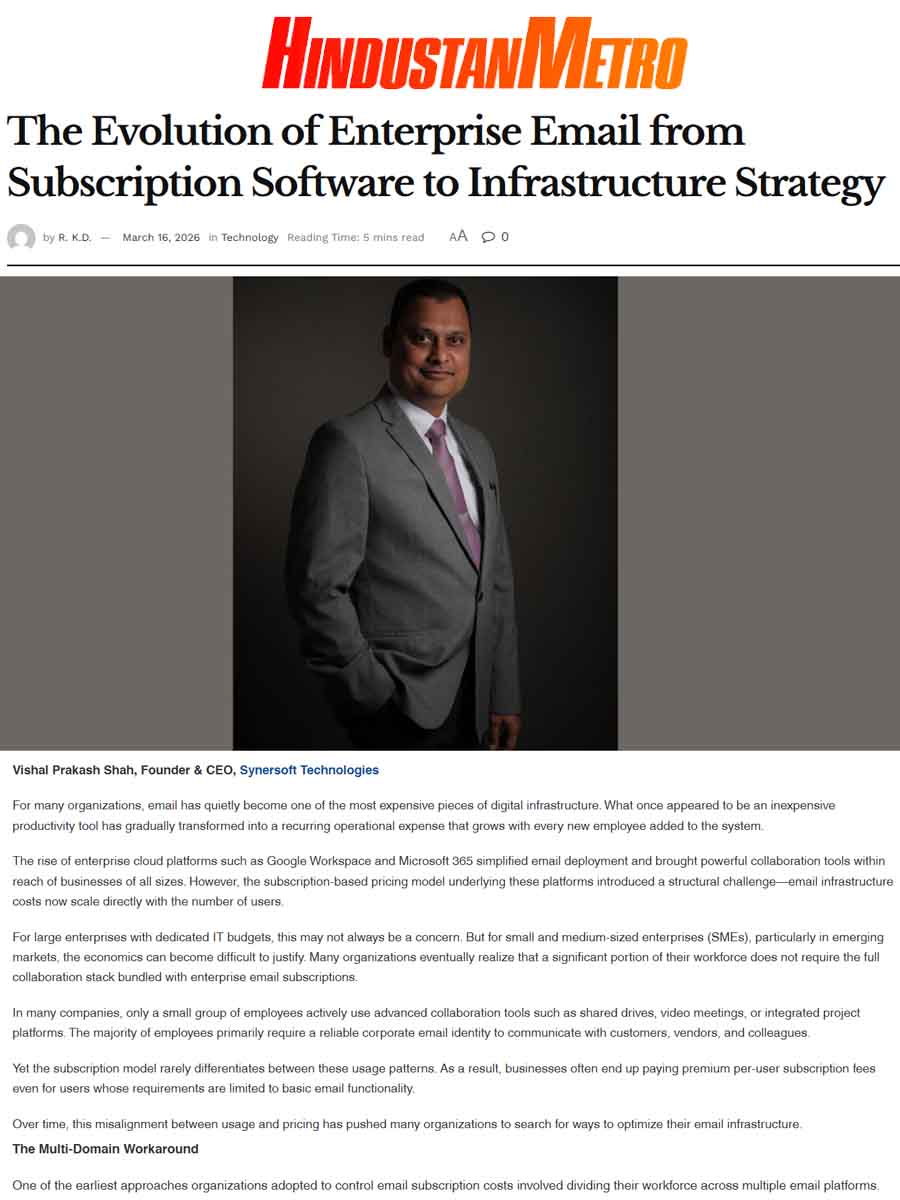 Synersoft Introduces Hybrid Email System for Indian MSMEs