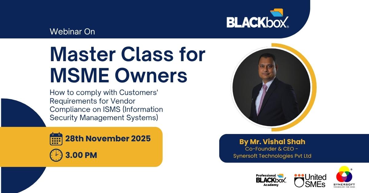 Webinar on Master Class for MSME Owners - How to comply with Customers' Requirements for Vendor Compliance on ISMS (Information Security Management Systems) by Mr. Vishal Shah
